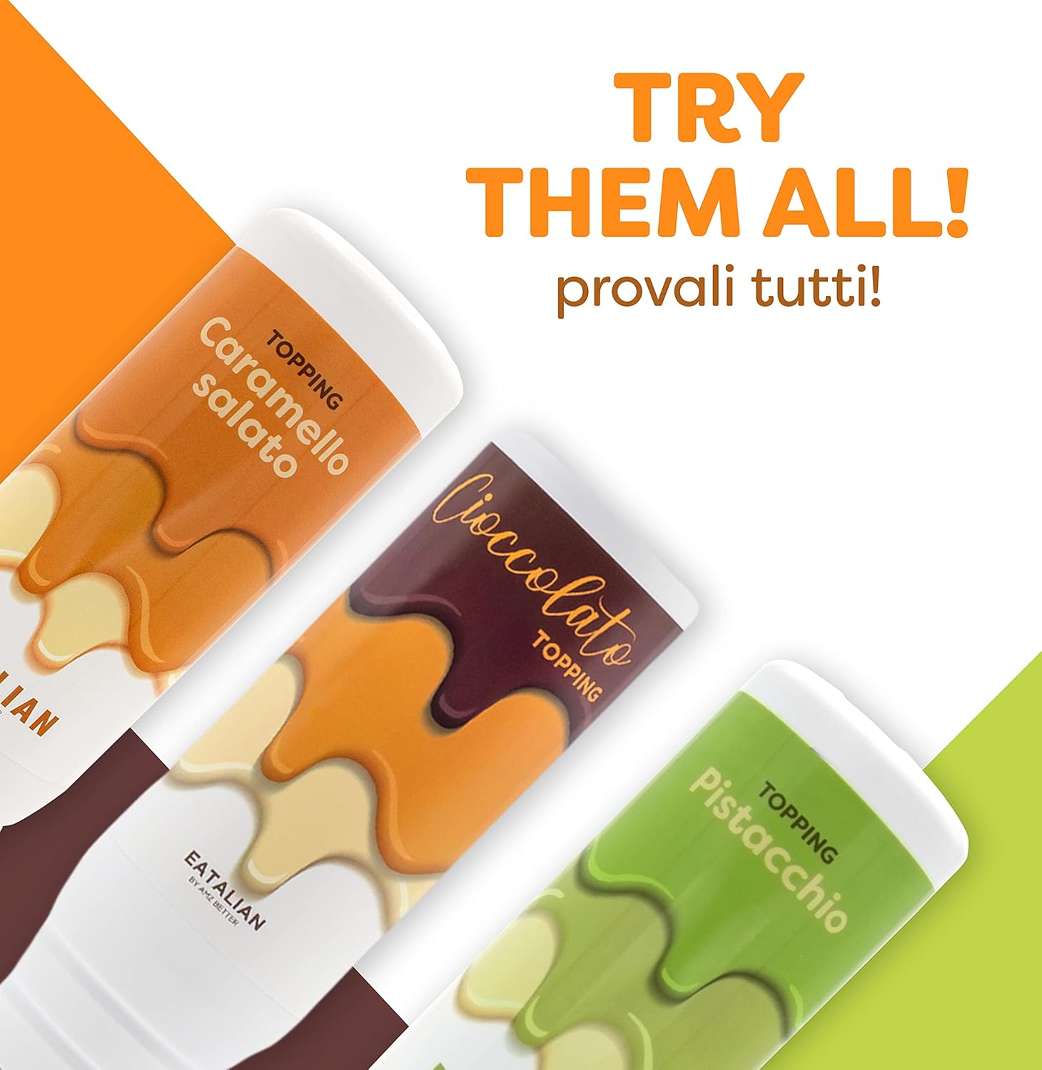 300 g (Pack of 1)EATALIAN by AMZ BETTER Topping with Salted Caramel, Sweet Protein Cream Squeezer, Made in Italy, Ideal Salted Caramel Sauce to garnish Ice Cream, Sweets and Dessert